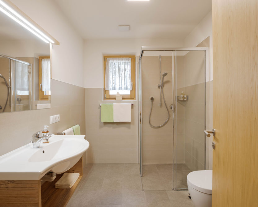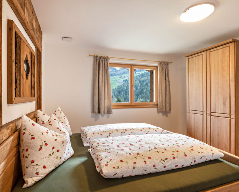 Diese Ferienwohnung bietet Platz für zwei bis vier Personen. Vom Balkon blickt ihr auf die umliegenden Wälder und anderen Höfe, auf unsere Wiesen und auf die 2.432 Meter hohe Sarner Pfattenspitz. Hier gibt’s reichlich Morgensonne – im Sommer bereits ab sieben Uhr früh.