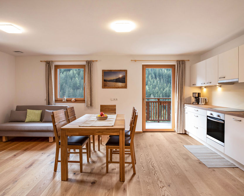 Unsere zwei 2021 neu erbauten Ferienwohnungen sind mit viel Sarner Holz ausgestattet und traditionell/modern eingerichtet. Auf dem privaten Balkon könnt ihr an vielen Tagen bereits beim Bauernhof-Frühstück die ersten Sonnenstrahlen genießen oder euren Urlaubstag bei Abendsonne und Blick auf Wald und Wiese ausklingen lassen.